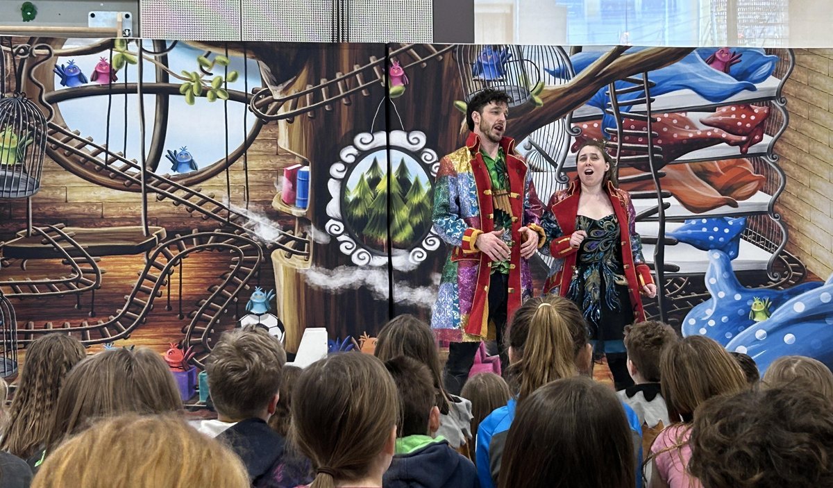 Die Sängerin und der Sänger brachten den Kindern die Geschichte auf lebendige und kindgerechte Weise näher. Alle Klassen hatten im Vorfeld gemeinsam mit ihren Musiklehrkräften ein Lied aus der Aufführung einstudiert, das während der Aufführung gemeinsam gesungen und dazu sogar noch ein wenig getanzt wurde.