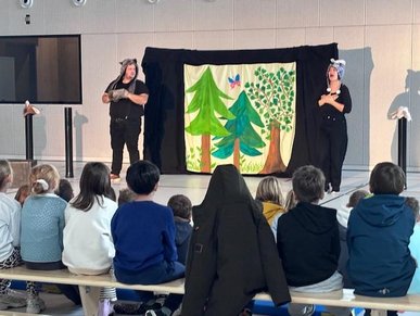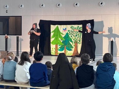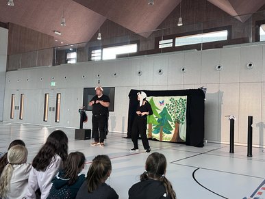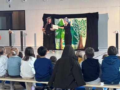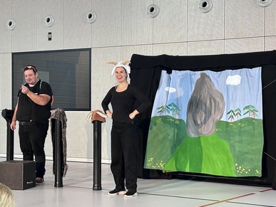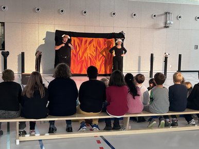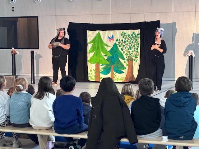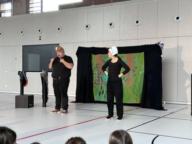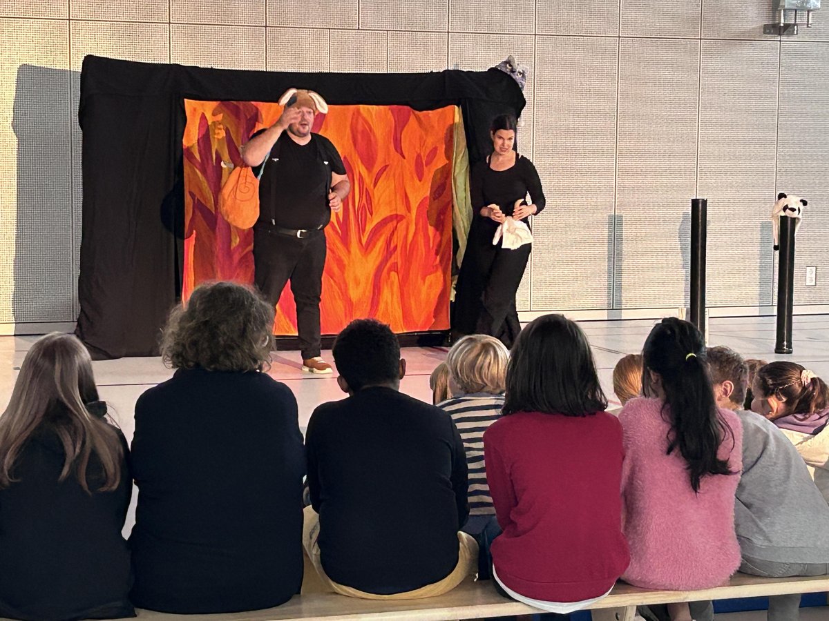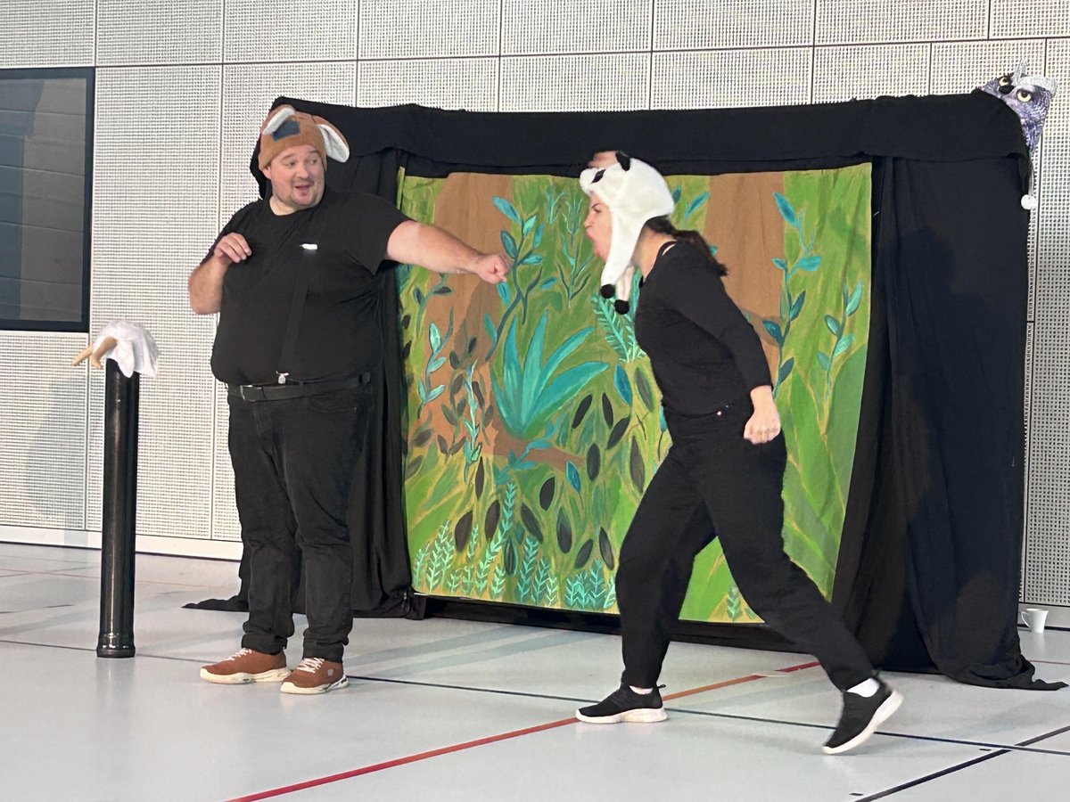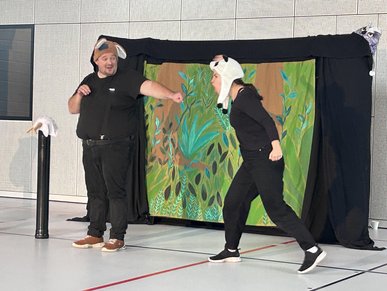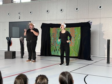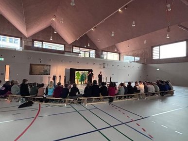 Die Theatergruppe Q-Rage aus Ludwigsburg spielte das Stück "Tierisch gut" für die 3. und 4. Klassen in unserer Turnhalle