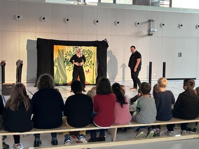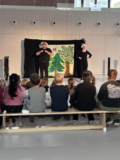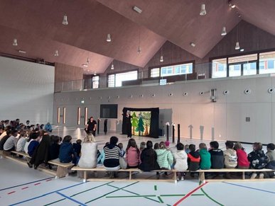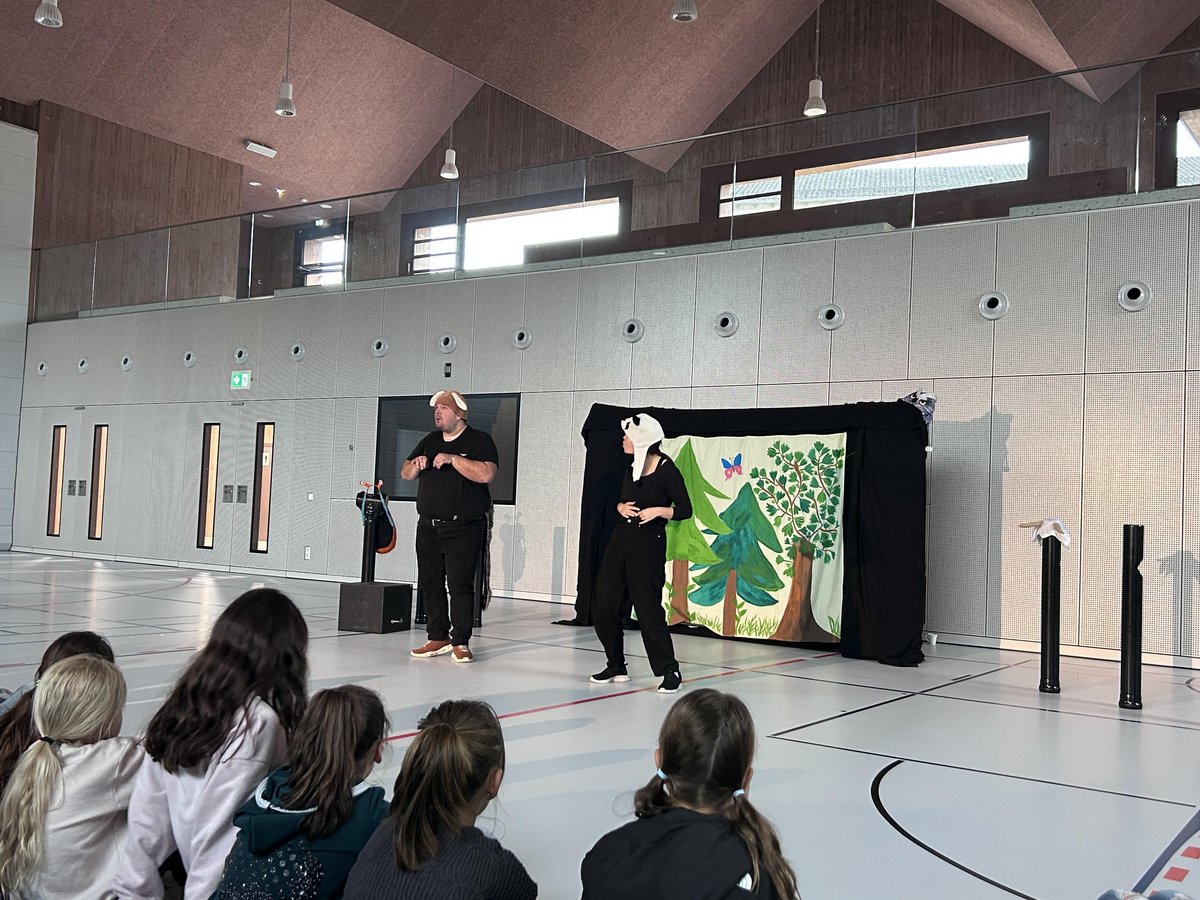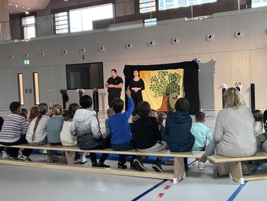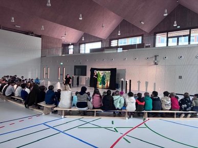 Alle Kinder waren von diesem Theaterbesuch in unserer neuen Turnhalle begeistert- ein Erlebnis, das allen rundum Freude bereitet hat.